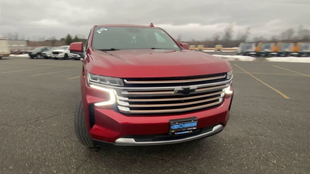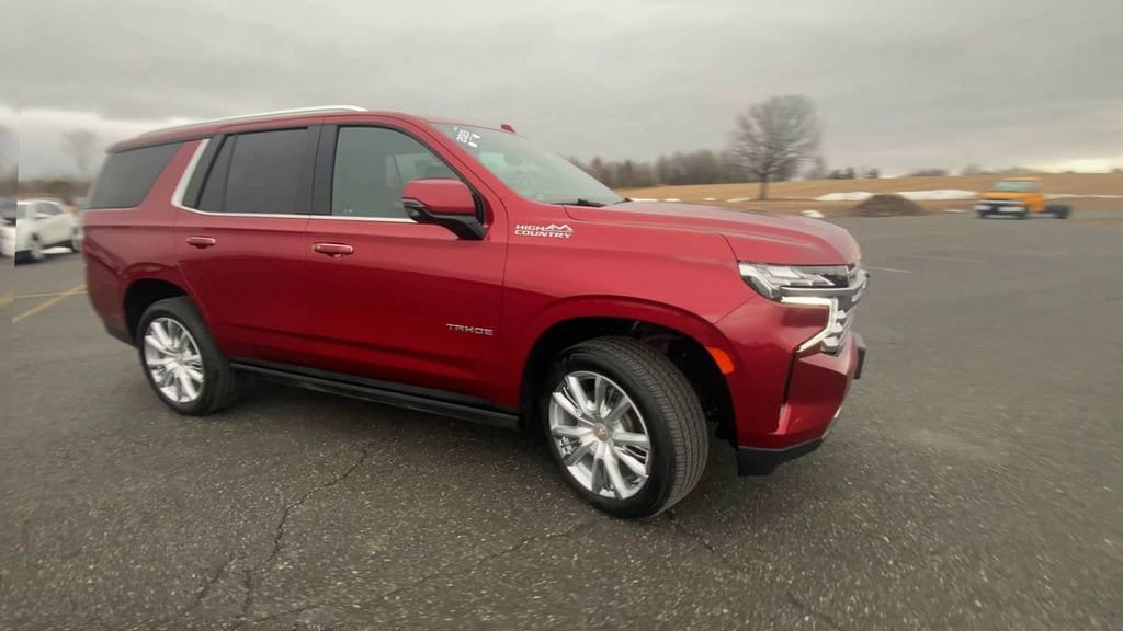 2023 Chevrolet Tahoe High Country, 4WD, 10-Speed Automatic with Overdrive, EcoTec3 6.2L V8, Radiant Red Tintcoat, 4WD, Jet Black Leather, 15 Diagonal Multi-Color Head-Up Display, 2-Speed Active Electronic AutoTrac Transfer Case, 3rd Row 60/40 Power-Folding Split-Bench Seat, ABS brakes, Adaptive Cruise Control, Advanced Trailering Package, Air Ride Adaptive Suspension, AM/FM radio: SiriusXM with 360L, Apple CarPlay/Android Auto, Bose 10-Speaker Centerpoint Surround Audio Sys Ft, Bright Front & Rear Door Sill Plates, Chrome Door Handles w/Body-Color Strip, Dual Exhaust System, Dual-Pane Power Panoramic Sunroof, Electronic Stability Control, Enhanced Automatic Emergency Braking, Enhanced Driver Information Center, Exterior Parking Camera Rear, Extra Capacity Cooling System, Front dual zone A/C, Hands-Free Rear Power Programmable Liftgate, HD Surround Vision, Heads-Up Display, Heated 2nd Row Outboard Seats, Heated front seats, Heated rear seats, Heated Steering Wheel, High Country Deluxe, Hill Descent Control, Hitch Guidance w/Hitch View, Illuminated Front & Rear Door Sill Plates (LPO), Illuminated Liftgate Sill Plate (LPO), Illuminated Mirror Chevrolet Emblem (LPO), Illumination Package (LPO), Infotainment Display, Inside Rearview Auto-Dimming Rear Camera Mirror, Integrated Trailer Brake Controller, Lane Change Alert w/Side Blind Zone Alert, LED Daytime Running Lamps, Max Trailering Package, Memory Settings, Outside Heated Power-Adjustable Mirrors, Perforated Leather Seat Trim, Power driver seat, Power Liftgate, Power passenger seat, Power Release 2nd Row Bucket Seats, Power Tilt & Telescopic Steering Column, Power windows, Power-Retractable Assist Steps, Preferred Equipment Group 3LZ, Rear air conditioning, Rear Camera Mirror Washer, Rear Cross Traffic Alert, Rear Pedestrian Alert, Remote keyless entry, Remote Start, Smart Trailer Integration Indicator, Steering wheel mounted audio controls, Trailer Side Blind Zone Alert, Universal Home Remote, Ventilated front seats, Wheels: 22 x 9 Sterling Silver Premium Painted, Wireless Charging. CARFAX One-Owner. Clean CARFAX.